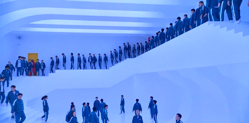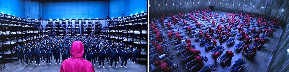 게임을 하다가 진 자들은 , 0.1초의 망설임도 없이 분홍입옷을 입은 자들이 총으로 쏴죽이고, 바로 장기가 적출되고,