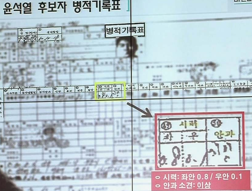 부동시로 면제를 받았다.