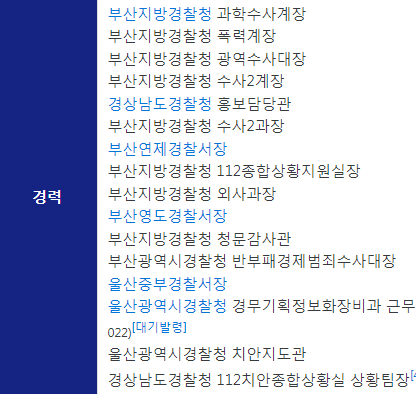 임관이후 pk 지역에서 경력을 쌓은후, 2019년 부산영도경찰서장, 2021년 부산지방경찰청 반부패수사대장, 2022년 울산중부경찰서장으로 재직하던중, 윤석열 정부의 행정안전부 경찰국 설립을 반대하였다.