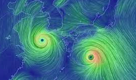 후지와 효과 (두개의 태풍 나타남, 하나의 태풍이 또다른 태풍을 흡수하기도한다)
