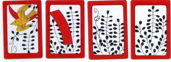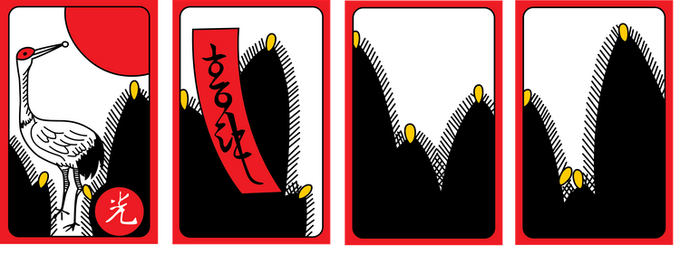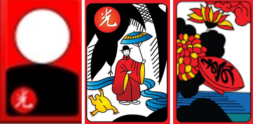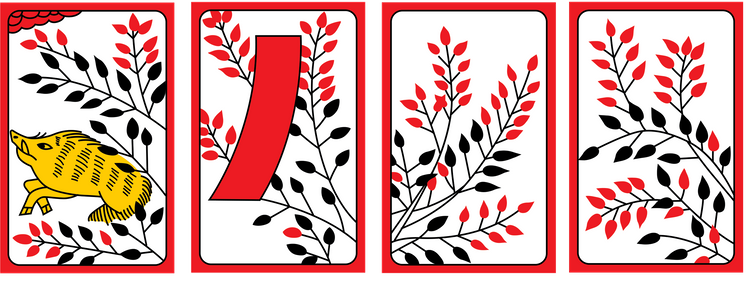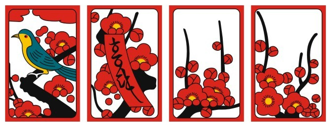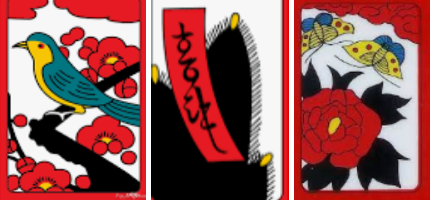 예1 - 하투를 가지고 패를 띠다가, 만약 (일-솔, 이-메조, 육-목단)이 떨어져 해석을 하자면, "님한테 소식이 와서 기뻤다" 라고 해석들을 한다.