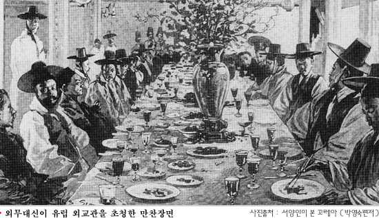 고종은 첫 근대화 개혁(광무개혁)을 한답시고 황제의 권위세우는 일에 석조전 중건 을 하고 연회를 베풀고 어차(고종이 타는차)를 사들이고, 배(양무호, 우리나라 최초의 군함)를 사들이고, 커피를 즐기며,고종황제의 근대화 개혁은 사치와 낭비였다. 그사이 러, 일 전쟁이 일어나(1904~1905) 일본이 승리하게 된다. (↓이것이고종 황제 광무개혁 이었다)