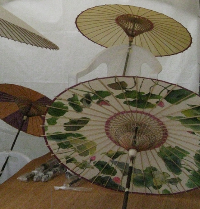 우산의 재료는 천이나 한지로 쓰였으며, 한지에 들기름을 칠해 말리고 칠하고를 반복하며, 접고 펼치기를 반복하는 재질로는 안성마춤인 것며, 우산대는 작은 대나무를 사용하였다고 한다.