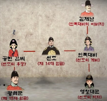 인조대왕의 정비 '의인왕후'는 자식을 낳지못해, 선조와 후궁 '공빈김씨' 사이에 태어난 장남 임해군이 있었지만, 임해군은 성격이 포악하고 사람을 맘대로 죽이며 제 멋대로 살았다.