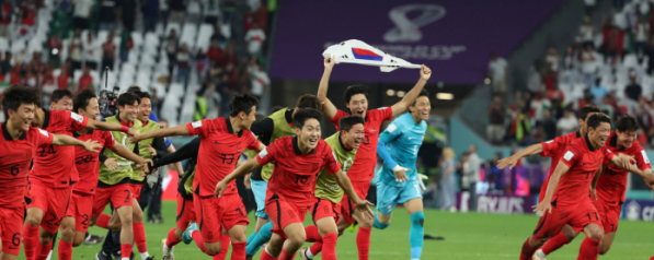 2022카타를 월드컵 H조 3차전 대한미국대 포루투칼 경기에서 전반 27분 동점골을 터트린 김영권에 이어 후반 경기 5분을 남겨놓고 손흥민이 어시스터 해준 볼을 황희찬이 받아 슛을 날려 결승골을