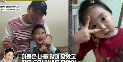 신동엽 아들 신규완군은 얼굴뿐아니라 개구진것 까지 아버지 신동엽을 쏙 빼닮았다고 한다.