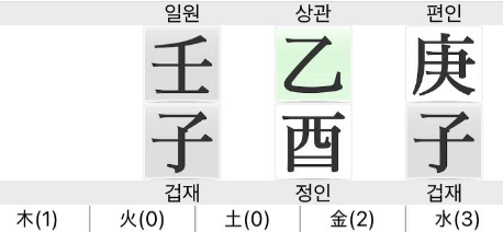 아래 칸에 (자,子)(유, 酉 ) (자,子) 도화살에 해당하는 글자가 3개나 들어있네요.