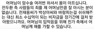 자신의 어머니 최정애는 암투병에 있으며,