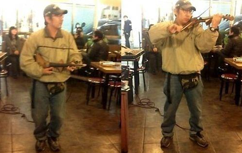 유흥업소는 물론 소규모 행사장, 무료 행사장등을 전전하며 바이올린 연주를 하였으며,