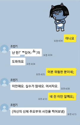 조민기는 학생들에게 부적절한 카톡과 사진을 찍어 보내며 추행을 하기도 하였다.