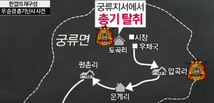이것이 경남 의령 궁류면 토곡리, 압곡리에서 우범곤이 1시간만에 저지른 만행인 것이다.