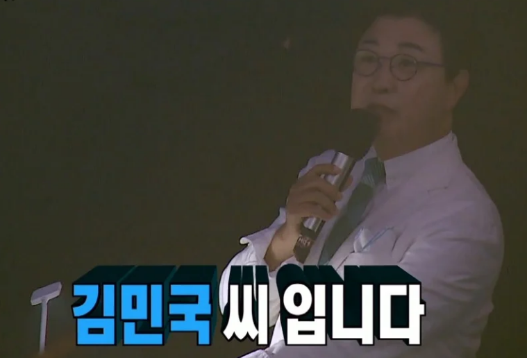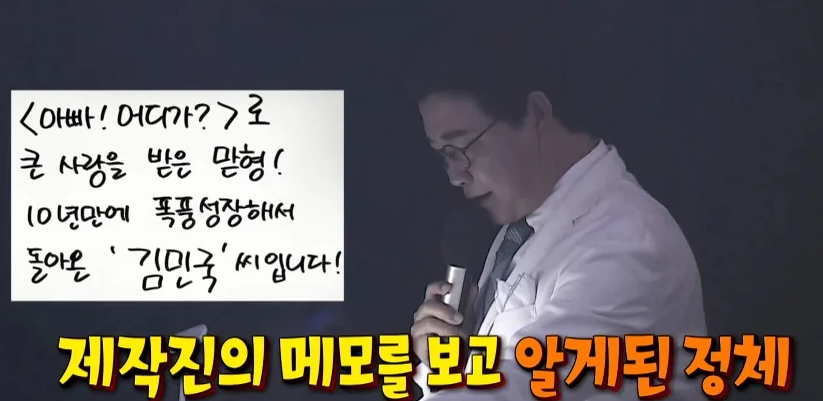 제작진이 내민 메모지에 김민국의 이름을 보고는 당황해서 재차확인하는 김성주