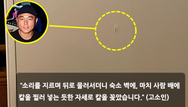 난동을 부리다가 벽에다 칼을 찌르고