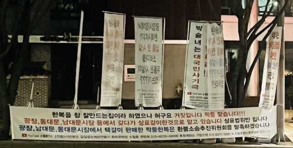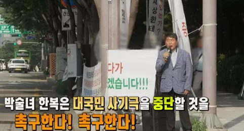지난 7월 온라인에서는 한복디자이너 박술녀를 고발한다며 청담동 박술녀 한복집 앞에서 시위를 하고있는 남성에게 이목이 집중 되었다.