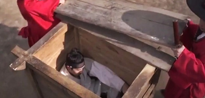 그러자 사도세자가 칼을 들고 자결을 하라하자 신하들이 말리면서 난리법석을 떨다 해가 기울고 영조는 하는수 없이 뒤주를 가지고 오라고 하여 뒤주 속에 사도세자를 가두자, 사도세자가 좁고 답답한 뒤주를 부수고 나온것이다.