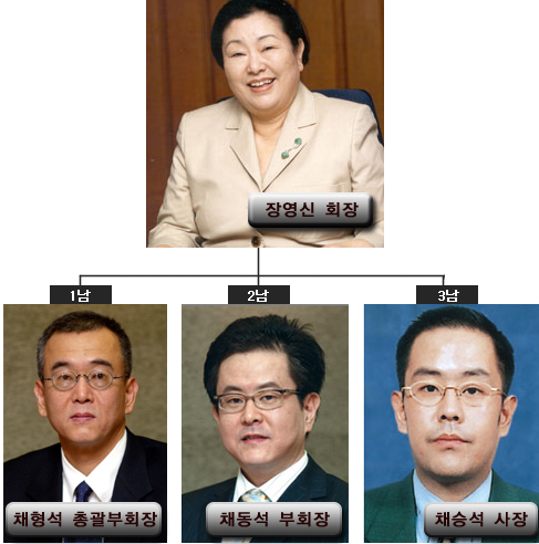 남편 채몽인이 죽은후 회사(애경유지)는 장영신의 두 오빠가 맞고 있었다.