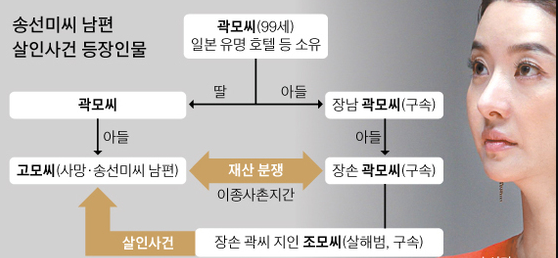 그러자 배우 송선미의 시어머니이자 고우석의 어머니는, 자신도 아버지(고우석 외할아버지)로 부터 상속을 받을 권리가 있는데, 아버지의 재산이 조카(곽씨) 명의로 모두 다 이전된 사실을 알고, 딸인 고우석의 어머니는 고우석과 함께 일본의 아버지(고우석 외할아버지 이자 곽씨의 할아버지)를 찾아가 자신에게는 상속을 해 주지 않고, 조카(곽씨)에게 다 상속했나며, 자신의 아버지에게 따진 것이다.