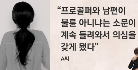 A씨는 남편(코치)과 여성 프로골프 선수는 사제 지간으로, 주로 집앞 5분 거리에 있는 술집과 숙박업소를 자주 이용하였고, A씨가 출산을 하루 앞둔 날에도 두사람은 숙박업소를 이용하였다는 주장이다.