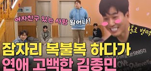 김종민은 1박 2일 저녁 복불복 게임에서 동료가 김종민을 골탕먹이려고, "여자친구 있는 사람 일어나"라는 말에, 김종민이 얼굴이 빨개지며 일어서 여자친구가 있다는 것을 알렸다.