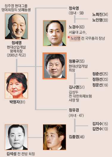 정몽규 HDC그룹 회장 가계도