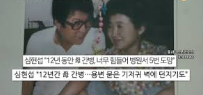 심현섭은 아픈 어머니를 간호 하면서 자신이 너무 힘들어, 어머니에게 투털거렸고, 자신이 개그맨이면서 어머니를 웃겨 드리지 못해, 어머니가 돌아가시고 난 다음 많은 후회가 된다고 하였다.